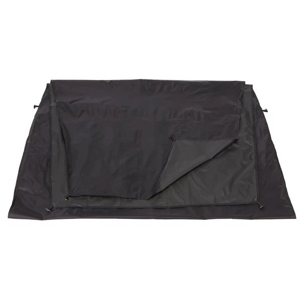 Footprint aus strapazierfähigem, wasserdichtem und PU-beschichtetem Nylon. Entspricht dem kompletten Grundriss des Zeltes (inklusive Apsis). Befestigt wird die Unterlage mit Knebelknöpfen.