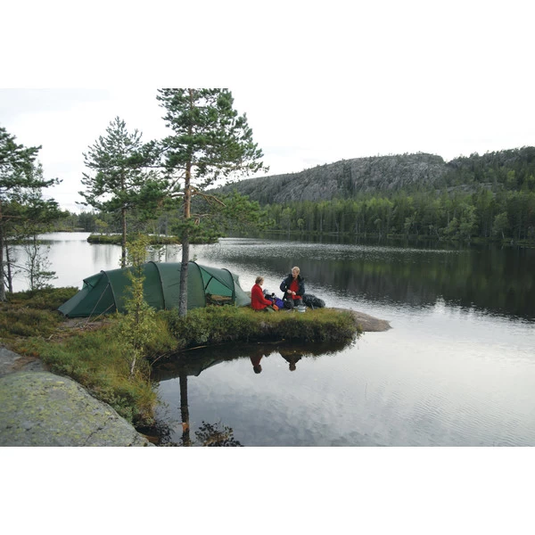 Großes Tunnelzelt mit zwei Apsiden. Geeignet für Touren zu jeder Jahreszeit. Trotz der Größe ist es leicht genug, um auch bei Wanderungen im Rucksack getragen zu werden.