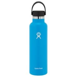Die Flasche ist mit einer robusten Pulverbeschichtung versehen. Sie liegt rutschfest in der Hand und ist deutlich kratzfester als klassische, lackierte Flaschen. Der Drehverschluss mit Henkel ist komplett auslaufsicher. Du kannst die Skyline also auch in deinem Rucksack transportieren.