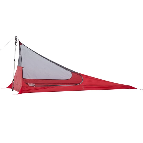 Das Mesh House wird mit einem Trekkingstock, Ast oder einer Tarpstange aufgebaut. Auch das Abspannen mit einem Seil an einem Baumstamm ist möglich. Es bietet dir bei trockenen Bedingungen einen Insektenschutz mit hervorragender Belüftung und freien Blick in den Nachthimmel.