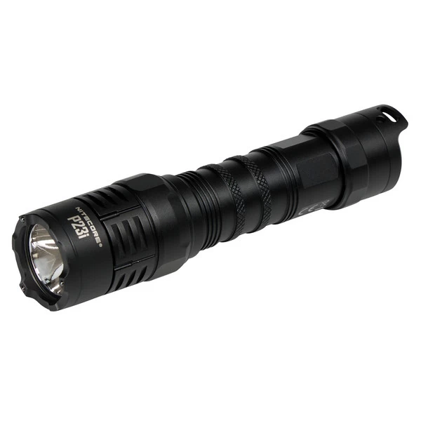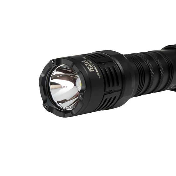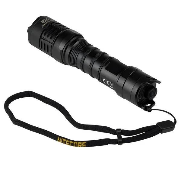 Taktische Taschenlampe mit Heckschalter, Strobe-Ready Taste und einer maximalen Helligkeit von 3000 Lumen. Das robuste Gehäuse besitzt eine Glasbrecher-Lünette aus Siliziumnitrid-Keramik.