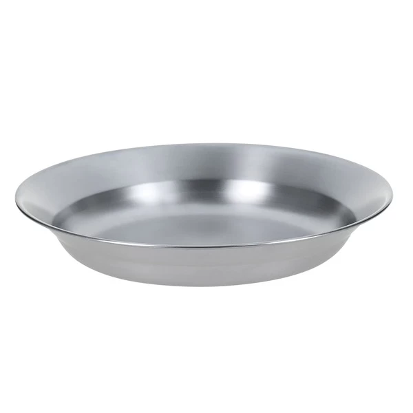 Robuster Teller aus lebensmittelechtem, unzerbrechlichem 18/8 Edelstahl. Die Seiten sind etwas höher gezogen, damit nichts vom Teller rutscht. Auch flüssige Speisen sind so kein Problem.
