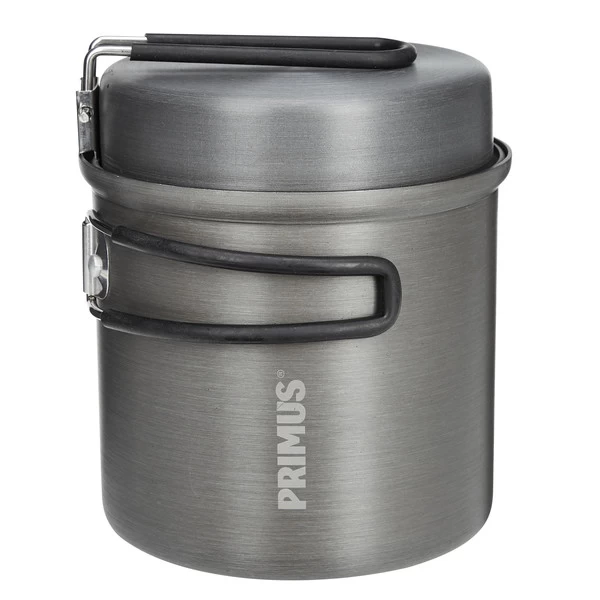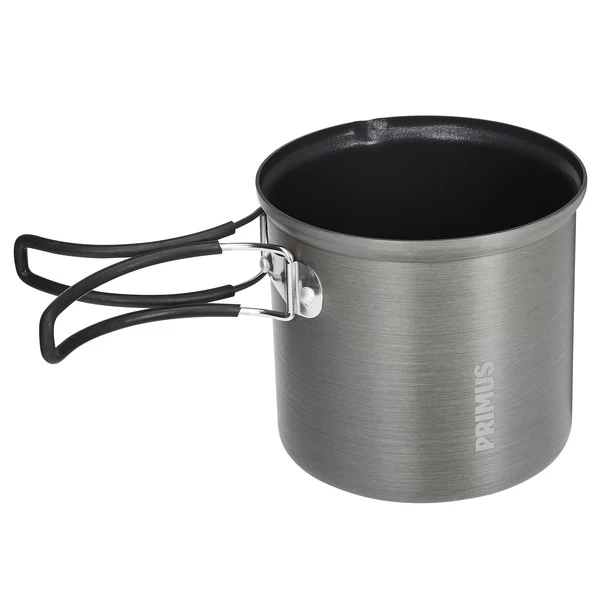 Die Litech-Serie von Primus glänzt – wie der Name schon sagt – durch geringes Gewicht, da hartanodisiertes Aluminium eine dünnere Wandstärke bei gleicher Festigkeit erlaubt. Die Griffe an Kessel und Deckel können angeklappt werden und ein im Kesselrand eingeprägter Ausgießer erleichtert das Befüllen von Tassen.
