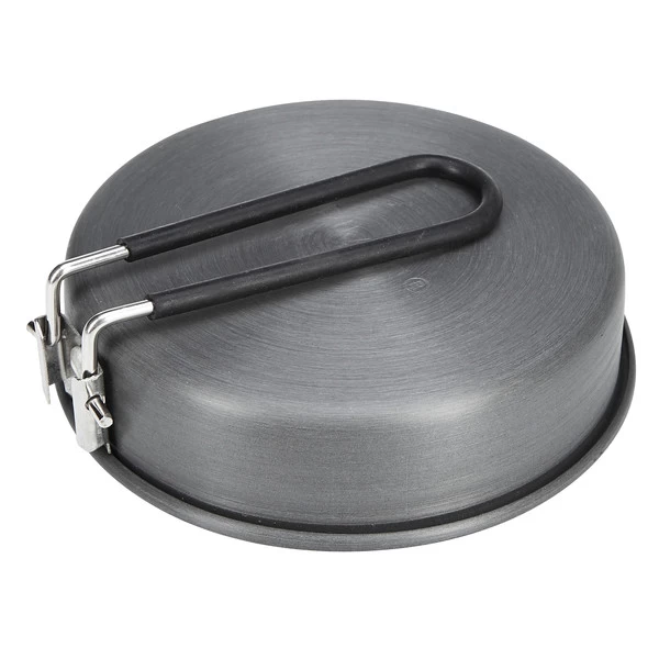 Dieses Kochset aus Topf und Pfanne/Deckel ist ideal für kleine Mahlzeiten oder dem Kaffeewasser am Morgen. Dank Klappgriffen ist er platzsparend verstaubar.