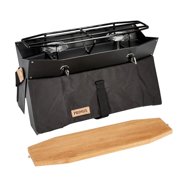 Eine Augenweide, die mit einem Standardkocher so gar nichts zu tun hat. Der hohe Zweiflammenkocher bietet eine große Standfläche und lässt sich fix aufstellen.