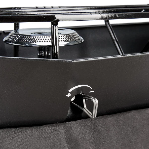Der Onja in schlicht-edlem Design ist in zusammengeklapptem Zustand gut zu verstauen. Er lässt sich dank seines Tragegurts wie eine Umhängetasche transportieren. Im Stadtpark oder am Strand angekommen, kannst du ihn fix auseinanderklappen: Dadurch hat der kompakte Zweiflammkocher eine große Standfläche und steht sehr sicher. Die große Auflagefläche erlaubt dir auch das Kochen mit großen Töpfen.