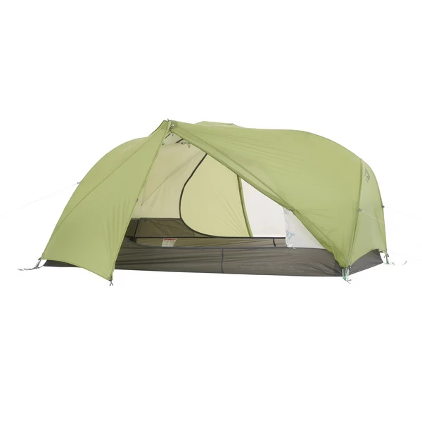 Die Querstange und das steil aufsteigende Gestänge spannen das Innenzelt und die Apsis weit auf, wodurch viel Platz im Innern entsteht. Bequemes Umziehen und ein komfortabler Aufenthalt sind daher möglich. Damit der Schlafsack beim Kontakt mit dem Außenzelt nicht nass wird, ist die Bodenwanne weit nach oben gezogen. 9 Schlaufen erlauben das Einhängen der Packsäcke oder eines separat erhältlichen Gear Lofts, der zusätzlichen Stauraum schafft.