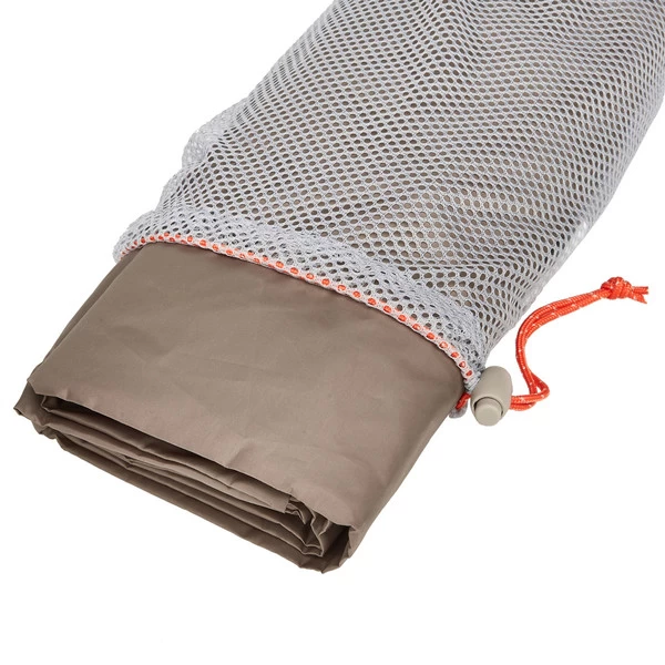 Die Unterlage ist passend für das gesamte Zelt, einschließlich der Apsis, und schützt den Zeltboden vor Schmutz, Beschädigungen und kondensierender Bodenfeuchtigkeit.