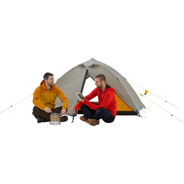 Im Innenzelt wird es wohnlich. Es bietet Platz für zwei Isomatten und erzeugt durch das gelbe Innenzelt ein warmes Licht. Ausrüstung und Schuhe finden in der Apsis Platz.